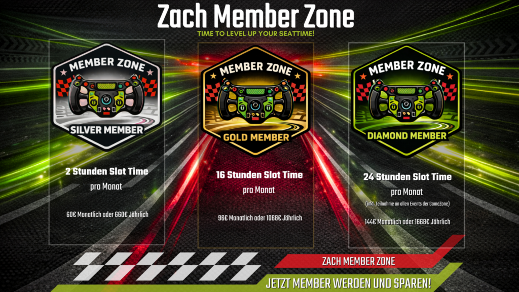 Ob ambitionierter Simracer oder Motorsport-Enthusiast: Das Abo bietet dir konstante Qualität, Vergleichbarkeit deiner Leistungen und eine exklusive Racing-Atmosphäre, die echtes Rennsport-Feeling vermittelt. Auf Wunsch ergänzt durch Events, Wettbewerbe und individuelle Betreuung.